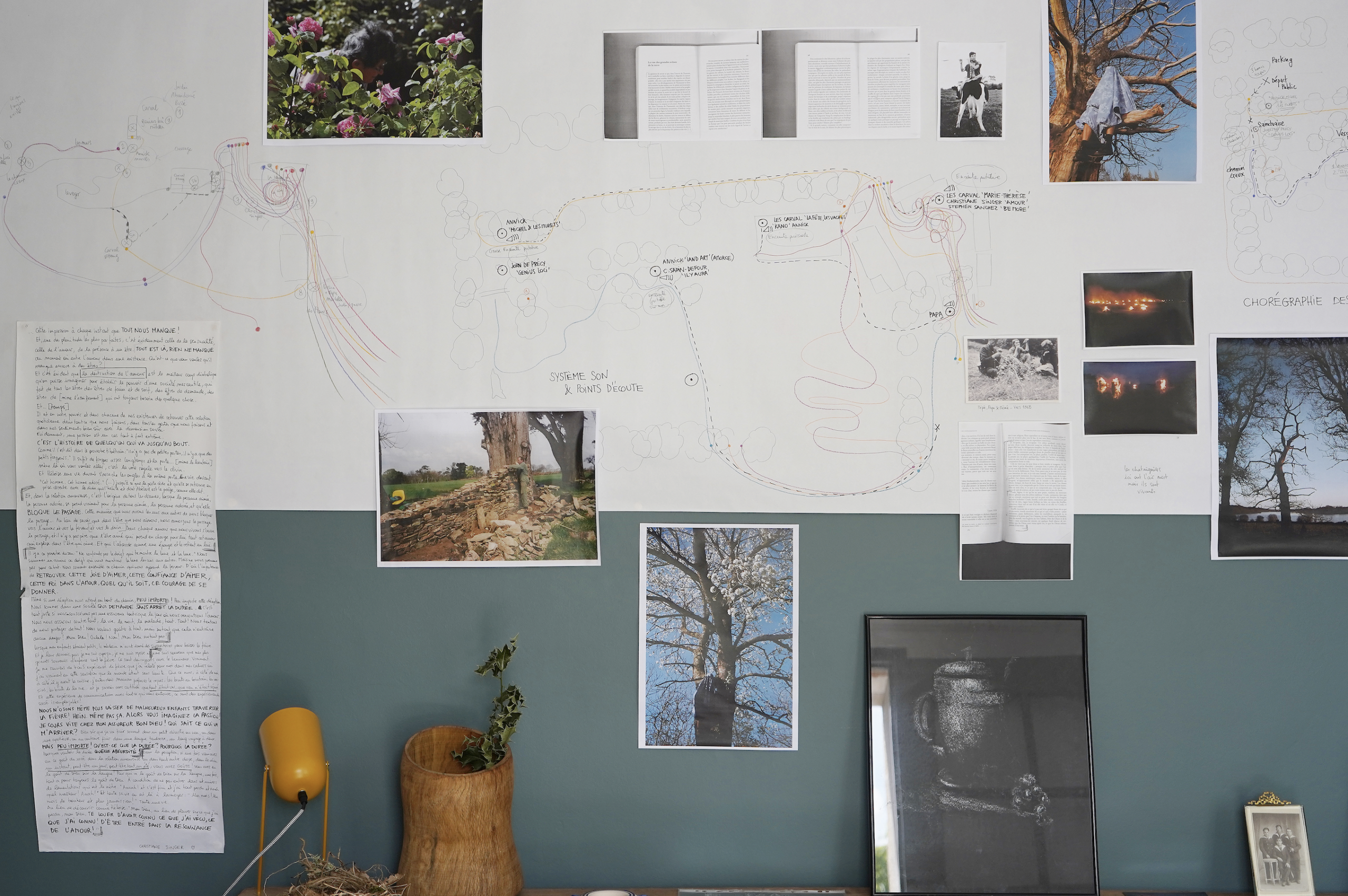 Il a été doublement sollicité pour dresser un diagnostic du paysage environnant la ferme et imaginer un projet artistique dans le cadre de l’exposition Ouverture avant travaux.