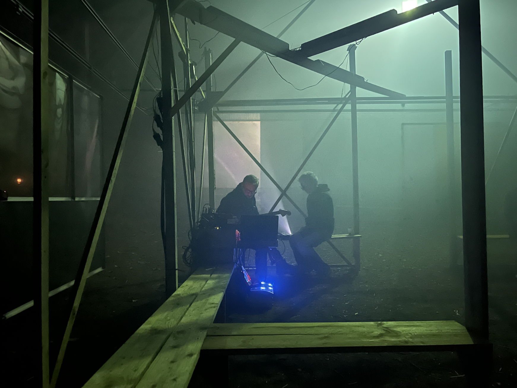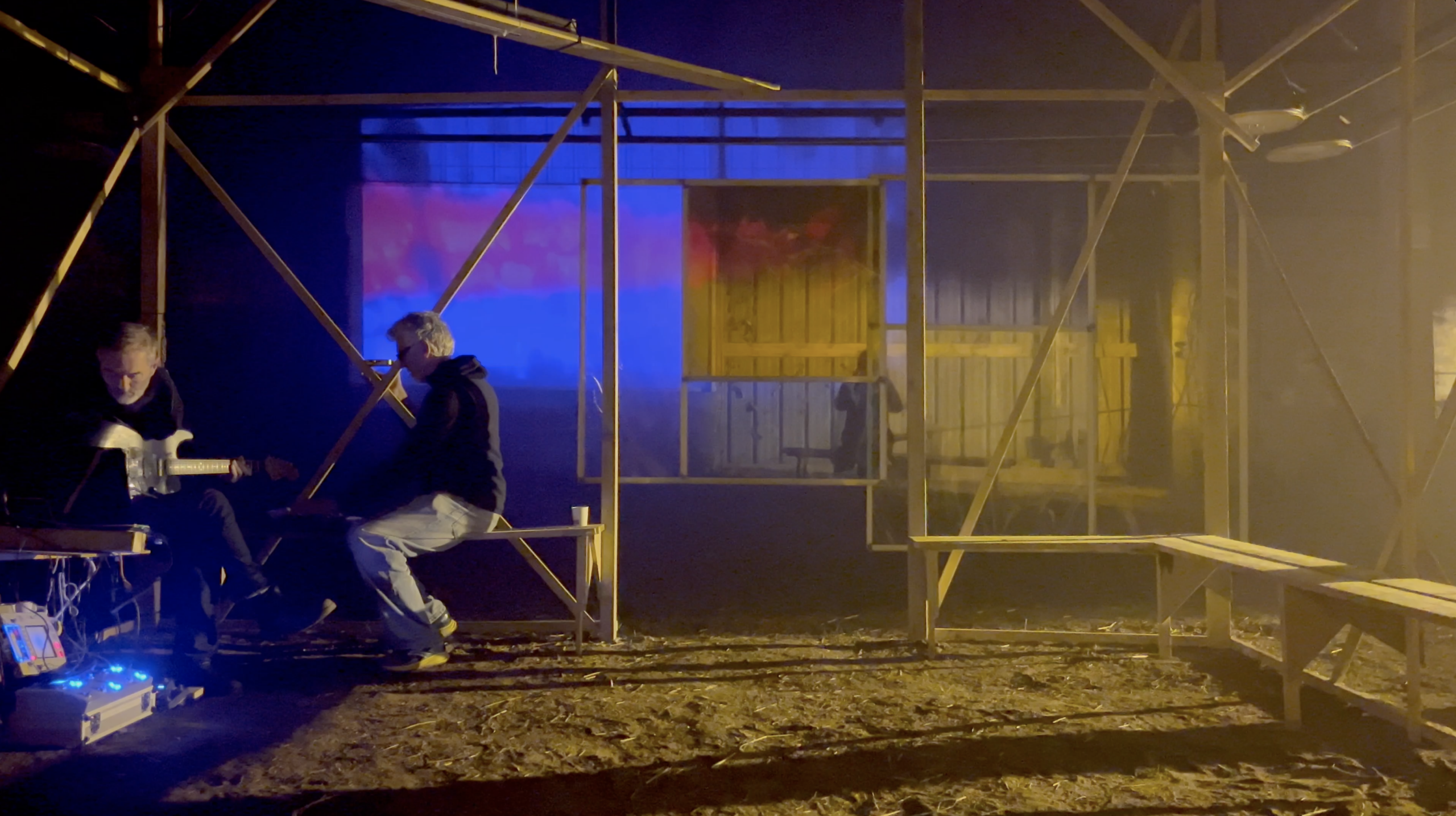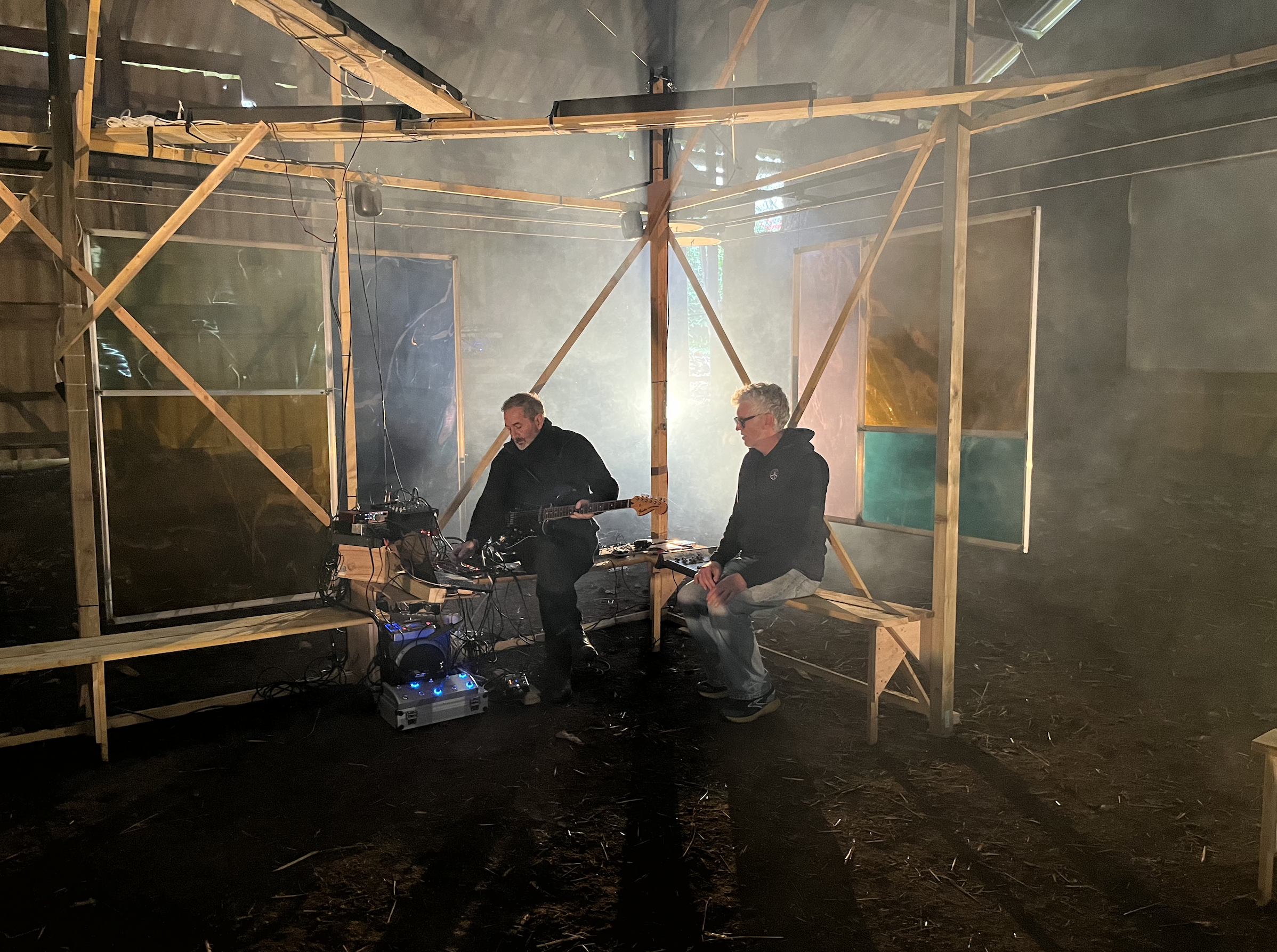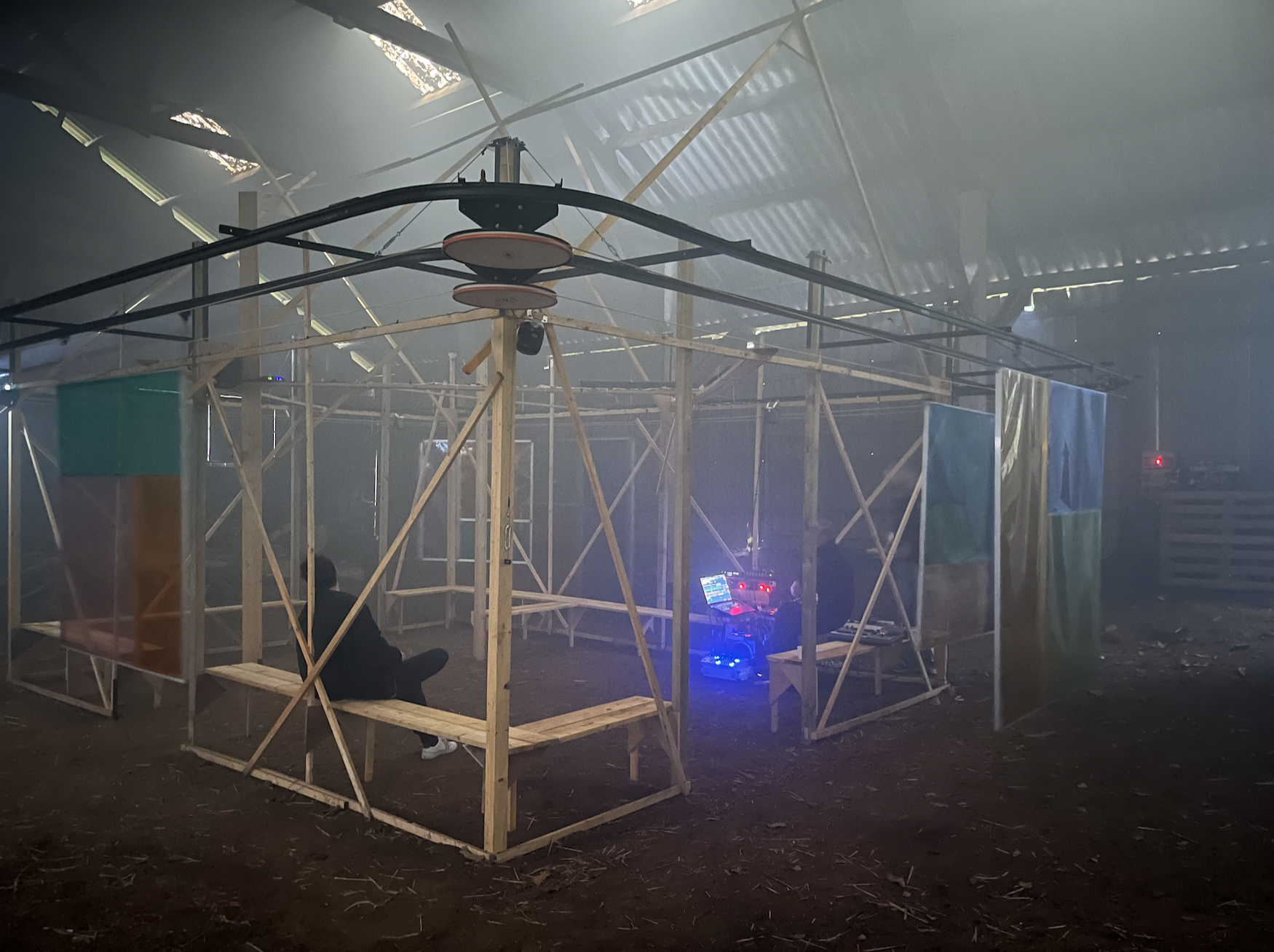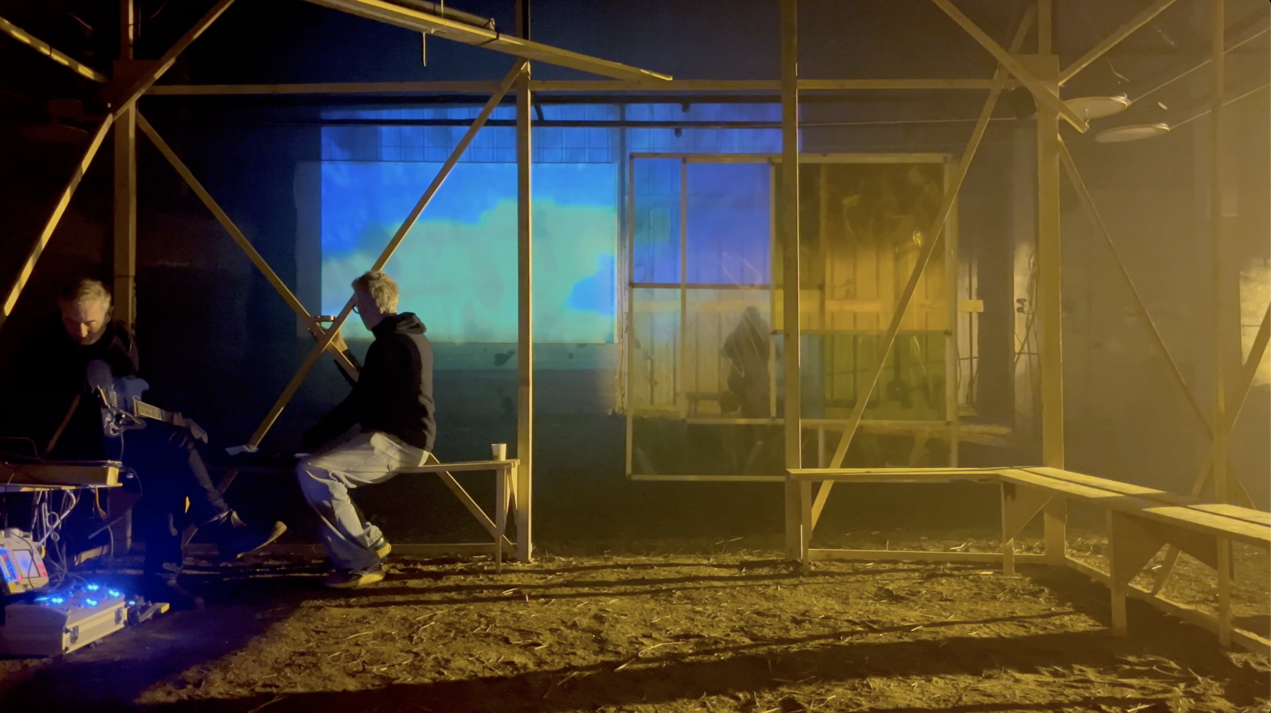 Une petite centaine de spectateurs sont invités à découvrir leurs univers au sein de la Cabane. Ils sont libres de s’asseoir ou de circuler, à l’intérieur comme autour de la structure, expérimentant ainsi l’œuvre de manière personnelle.
