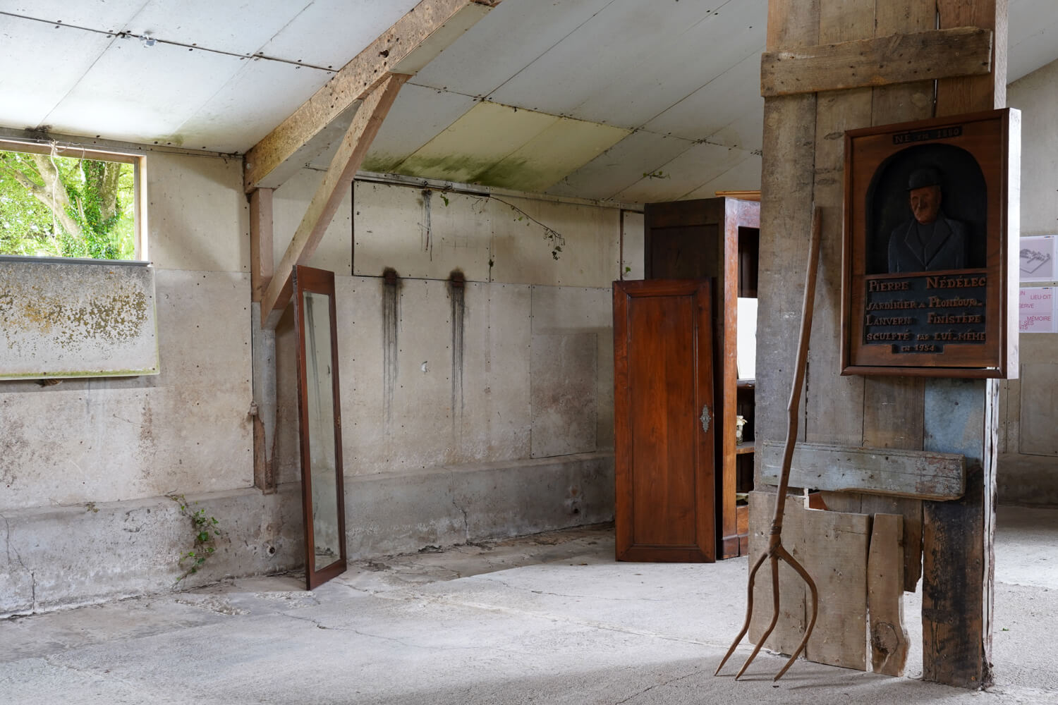 Tout en recourant à des pièces historiques (comme la sculpture de Pierre Nedelec de la Cathédrale Saint-Corentin, artiste-paysan qui habita la ferme), et des œuvres de la collection confiée au fonds (un film de Chloe Dugit-Gros, deux petits films de Massinissa Selmani, un protocole de Pierre Huyghe), elle repose principalement sur une série de commandes engageant à la fois artistes (Daniel Dewar & Gregory Gicquel), les architectes impliqués dans le projet (Jean-François Madec et l’atelier Blam), les premiers résidents du fonds (Kevin Laplaige et Arina Essipowitsch) et des étudiant.e.s d’art (du site de Quimper de l’Ecole Européenne Supérieure d’Art de Bretagne ; certains Lycéen.ne.s du Bac Pro Aménagements Paysagers du lycée agricole Kerbernez seront également mis à contribution).