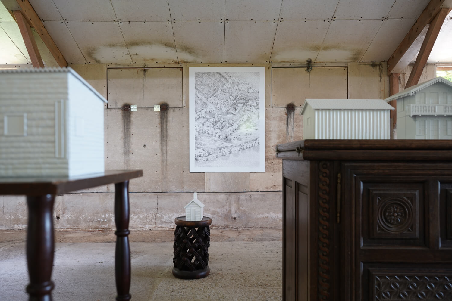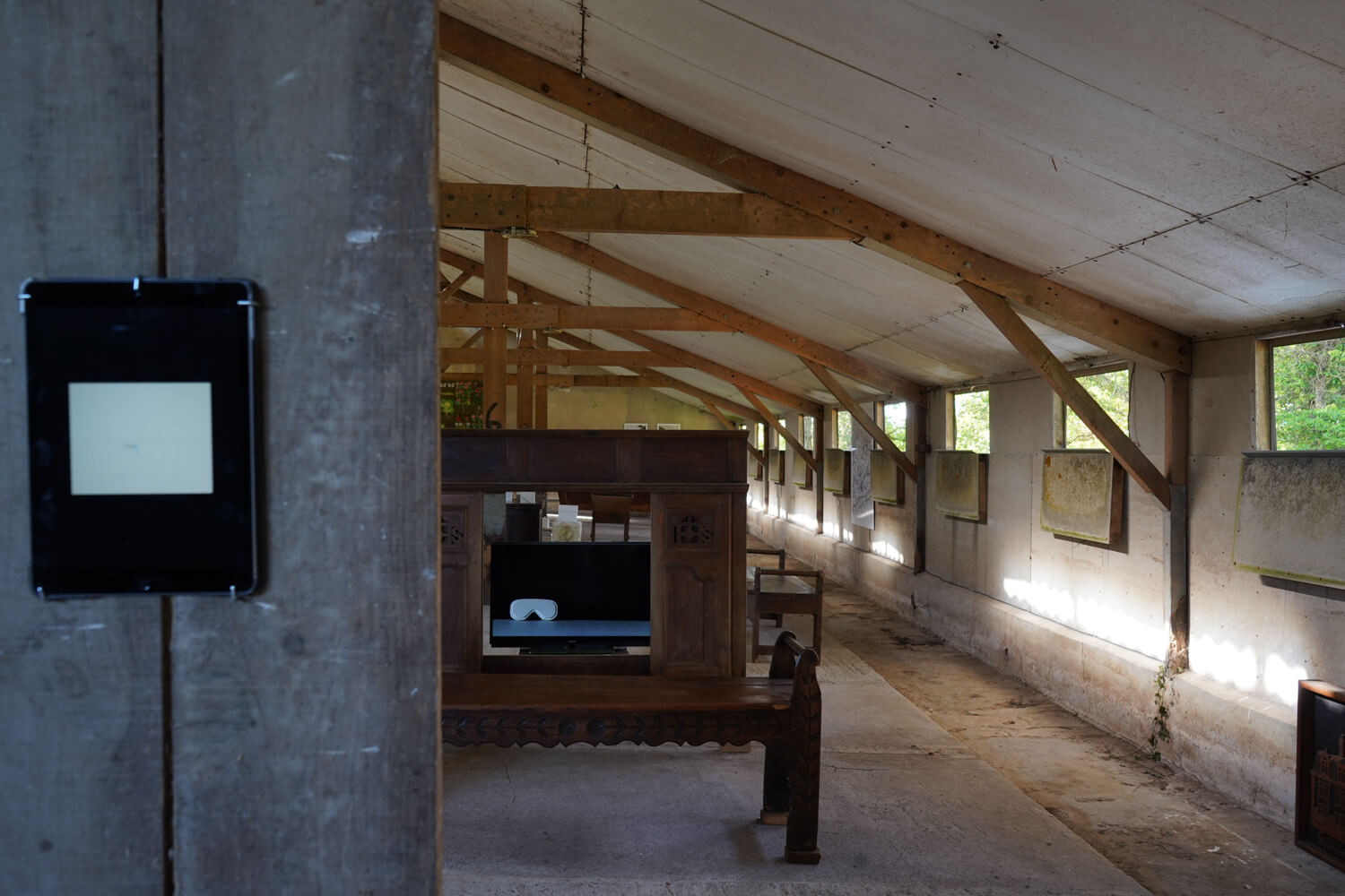 Ouverture avant travaux rassemble un ensemble d’œuvres et de propositions performatives qui dressent un état des lieux du paysage, esquissent les portraits de ses précédents habitants, offrent un témoignage de l’identité du site et présentent son projet architectural à venir.