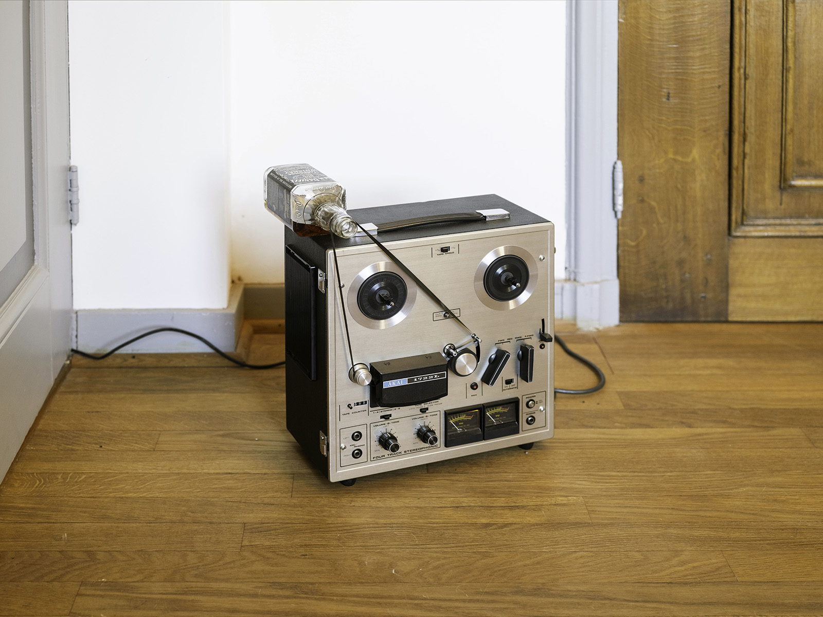 Magnétophone 4 bandes AKAI 1722L, bande audio trouvée, bouteille de whisky Jack Daniels, whisky,