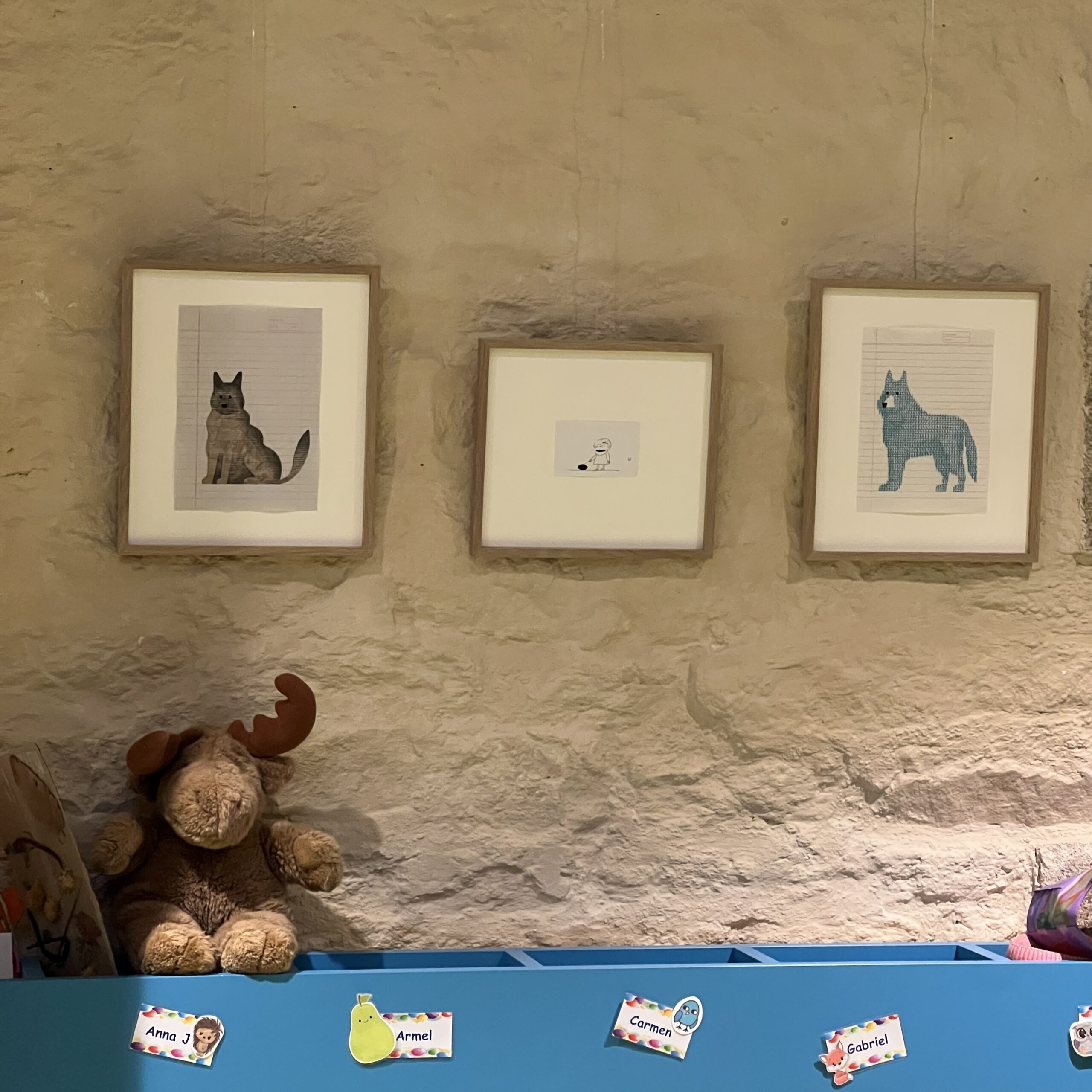Chiens et Oiseaux rassemble cinq des 200 dessins de Chiens réalisés par Jochen Gerner en 2023 et six des portraits d’oiseaux esquissés en 2021.